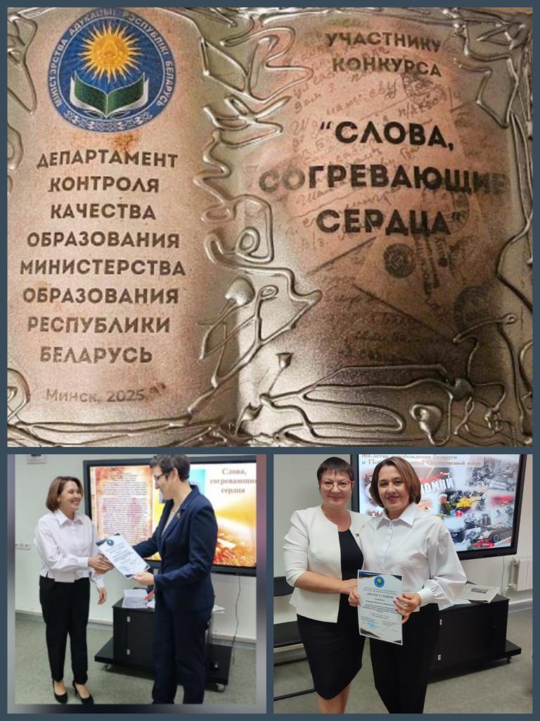 21 октября 2025 г. на базе Департамента контроля качества образования Министерства образования Республики Беларусь состоялось награждение победителей творческого конкурса "СЛОВА, СОГРЕВАЮЩИЕ СЕРДЦА"
